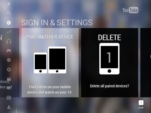YouTube TV, to je název služby, díky níž ovládáte vaši televizi nebo konzoli s nainstalovanou aplikací YouTube vaším mobilním telefonem. Telefon v tomto případě funguje jako ovladač a můžete na něm i tvořit playlist, co se vám v televizi pustí. Pro spárování s YouTube TV stačí jít v mobilním telefonu na adresu youtube.com/pair nebo přímo v YouTube aplikaci vybrat položku “Spárovat s YouTube TV” a tam zadat vygenerovaný kód. Poté si vaši televizi uložíte a při příštím připojení na televizi stačí kliknout na ikonku televize v pravém horním rohu. Podporovaná zařízení, která pracují s YouTube TV jsou Google TV, Xbox 360, PlayStation 3, Wii-u, Blu-ray player a chytré televize.