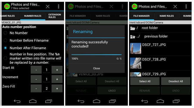 Photos and Files Renamer Pro vám pomůže s problémem, kdy potřebujete pojmenovat např. fotky z dovolené. Aplikace umožňuje mnohé nastavení pro pojmenování. Většina uživatelů okamžitě pochopí, jak aplikace funguje, proto nemusíte mít strach z toho, že je aplikace pouze v angličtině. Při otevření aplikace jednoduše najedete do složky se soubory, které potřebujete přejmenovat a následně si je označíte výběrem, posléze již můžete nechat aplikaci soubory přejmenovat. Nejprve je však nutné nastavení pravidel pro jména souborů. Po potvrzení přejmenování uvidíte, jak a kolik souborů již bylo zpracováno. Aplikace je ke stažení za menší poplatek 39,99 Kč.