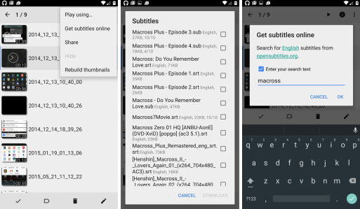 Ale přejděme k hlavní novince, k níž se vztahují obrázky výše. Nyní tedy máte možnost stahovat titulky z online služeb. Primárně však aplikace hledá jejich správnou verzi na webu opensubtitles.org, a to tím způsobem, že vezme název souboru a jazyk systému. Poté hledá nejlepší možné kombinace, které vám zobrazí. Titulky také můžete uploadovat.