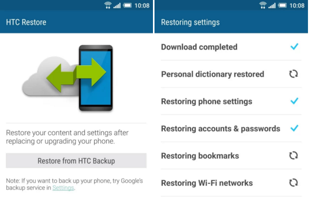HTC Restore vám umožní udělat důležité zálohy například před aktualizací softwaru apod. Vše je velmi jednoduché a dá se říci, že postup zvládne i člověk bez znalosti angličtiny. Zálohovat data lze i v případě, že budete přecházet na nový typ telefonu od HTC. Záloha by totiž neměla být ovlivněna tím, že se pokusíte o obnovení dat na jiném zařízení. HTC Restore dokáže zálohovat vaše predikce, pokud využíváte klávesnici HTC, jako další je to nastavení telefonu (pokud nepřecházíte na jiný), nastavení účtů a hesel, záložek ve výchozím prohlížeči a uložené přístupové body Wi-Fi s jejich hesly.